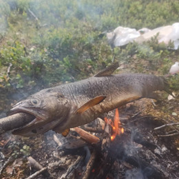 Po snídani jsem se věnoval opravám vybavení a odpoledne jsme s Bjørnem vyrazili na ryby. Podařilo se mi chytit pstruha, kterého jsem si vzal na večeři.